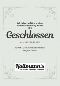 Unser Bistro ist von Montag bis Freitag von 08:30-14:00 Uhr geöffnet.